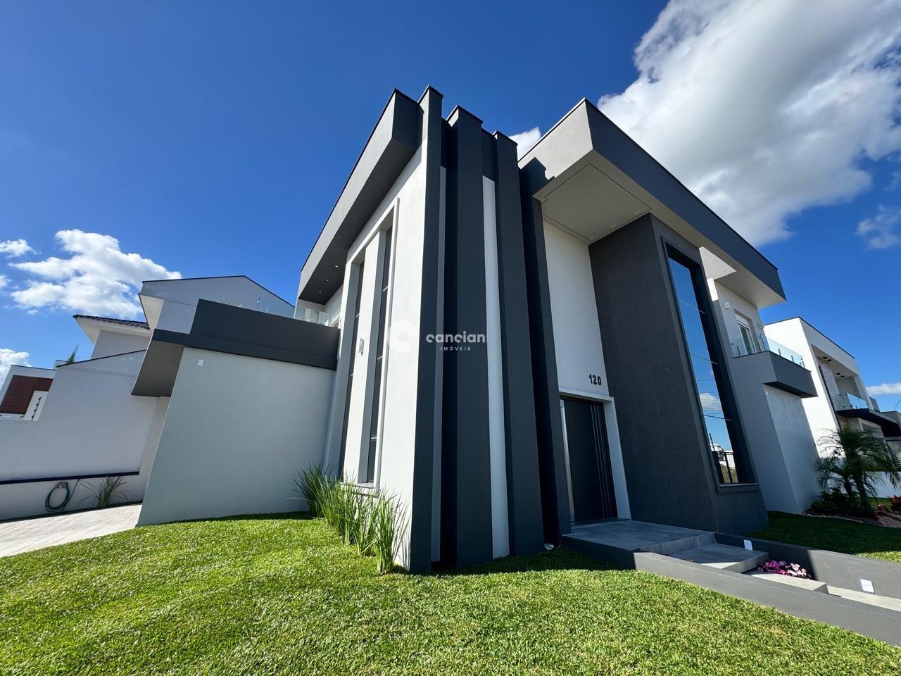 Lindíssima casa localizada no Terras de Santorini, em Santa Maria O imóvel conta com 262m² de área privativa, construídos com excelência em acabamento. Pisos aquecidos nos banheiros, proporcionando mais conforto nos dias frios Na parte superior, são 3 dormitórios, sendo uma suíte master com terraço — perfeita para momentos de descanso Já na parte térrea, destaque para a sala com pé-direito duplo e lareira com calefator, trazendo charme e aconchego ao ambiente , escritório que pode se transformar em quarto. Cozinha ampla, com excelente ventilação e iluminação natural em todos os cômodos O pátio conta com um gramado delicioso e um espaço gourmet com churrasqueira — ideal para receber amigos e viver bons momentos